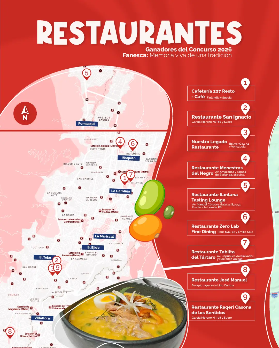 Como parte del reconocimiento, Quito Turismo desarrolló el mapa de las mejores fanescas de la ciudad, permitiendo a residentes y visitantes identificar los establecimientos destacados y vivir esta experiencia gastronómica durante la temporada.